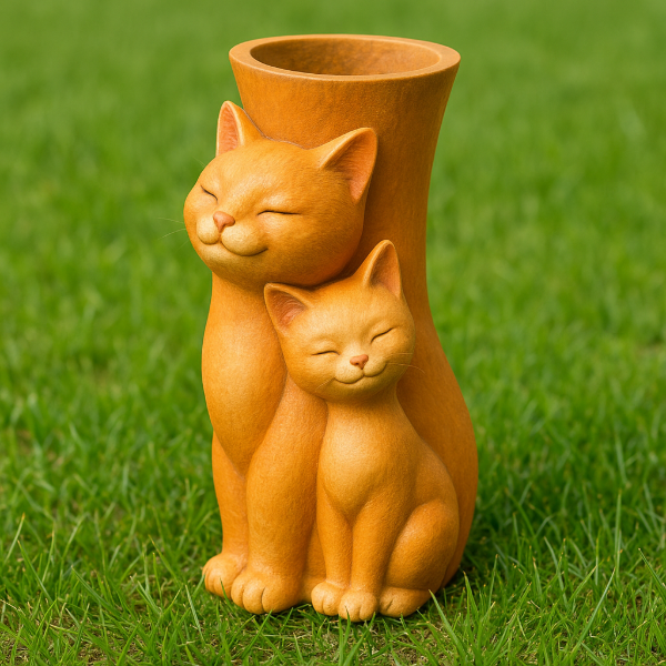 Este molde para maceta Gatitos Abrazados está pensado para coladas de cemento o yeso, con un diseño súper tierno y detallado: dos gatitos sentados juntitos, con caritas tranquilas y una postura que transmite amor y calma.
