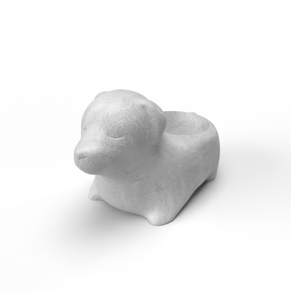 Este molde reutilizable para maceta Perrito está impreso en 3D y pensado para coladas de cemento o yeso, con formas suaves y una expresión dulce que transmite calma y cariño.