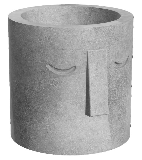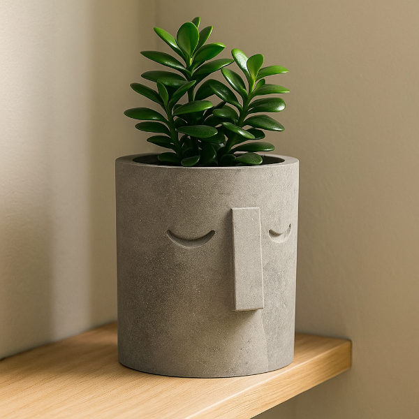 Diseño minimalista con líneas suaves y una textura de cemento alisado que le da un estilo moderno y elegante. Su forma representa un rostro sereno, ideal para transmitir calma y armonía en cualquier espacio.