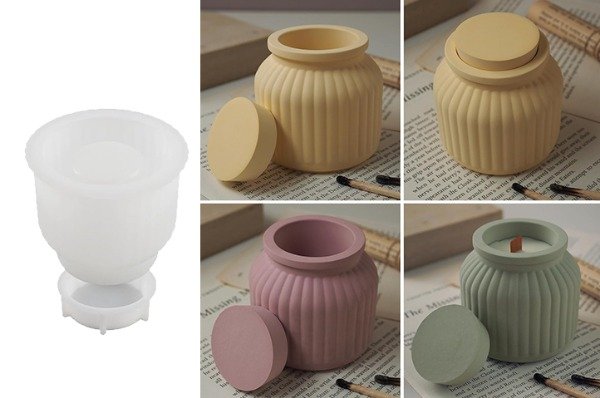 Dale un look elegante y minimalista a tus velas o contenedores con este molde de silicona para vasija rayada con tapa plana. Ideal para cemento/yeso, resina, cera de soja/parafina y micro-concreto fino.