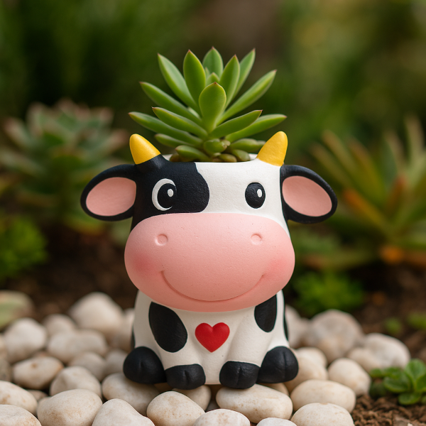Este molde reutilizable para maceta Vaquita está impreso en 3D y pensado para coladas de cemento o yeso con detalles súper definidos: cuernitos, manchas y ese hocico gordito que roba suspiros. Ideal para suculentas y mini cactus.