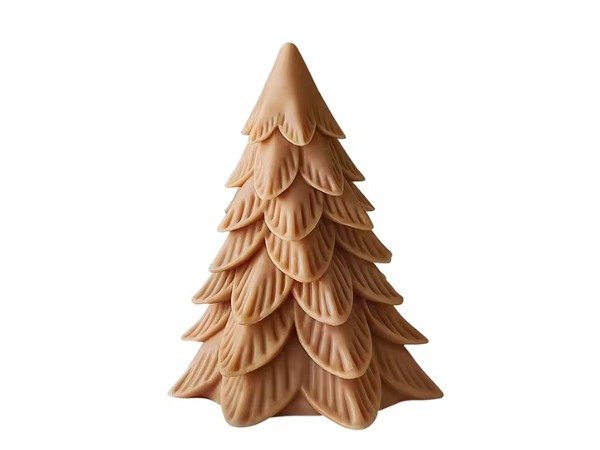Diseño: cono con “ramas/hojas” texturadas en distintas capas y punta superior para mecha.