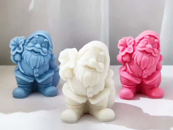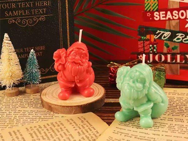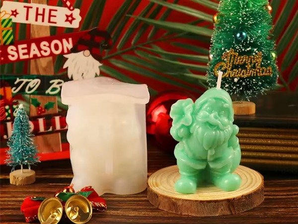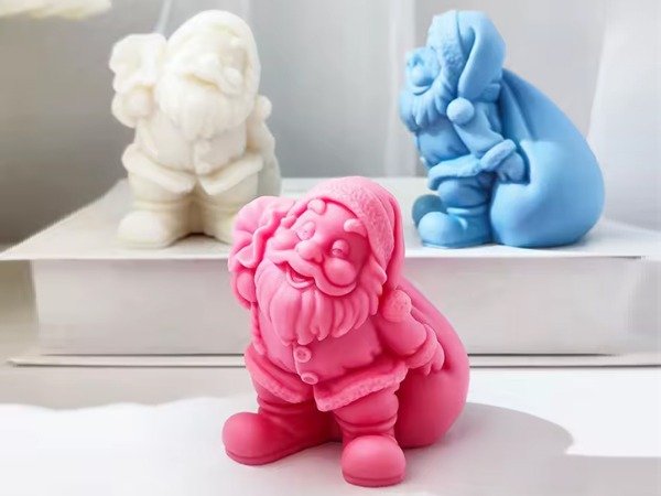 Molde de silicona flexible para crear una vela/figura navideña de Papá Noel llevando su bolsa de regalos, con rasgos bien marcados (barba, abrigo, botas). Ideal para cera (soja, parafina o blends) y también compatible con resina epoxi, jesmonita o yeso para piezas deco sin mecha.