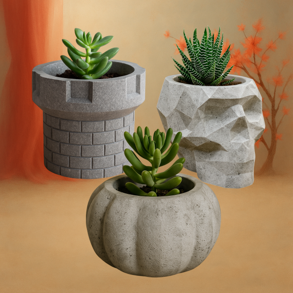 Pack de 3 moldes en impresión 3D para hacer estas macetas distintas y llamativas: