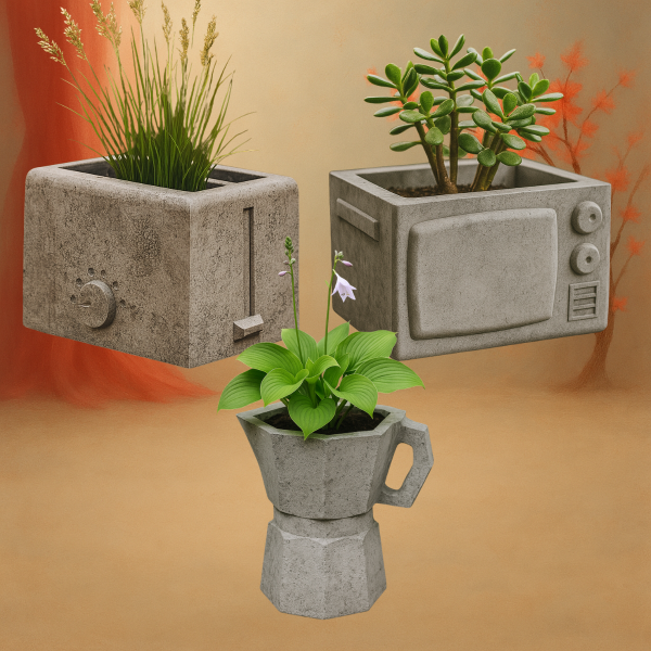 Pack de 3 moldes en impresión 3D con temática hogar para hacer macetas súper originales: