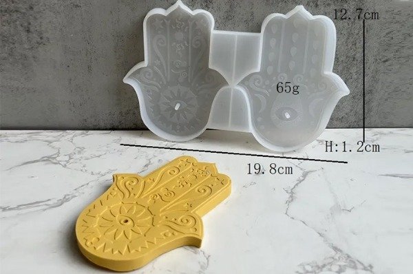 Incluye: 1 molde doble de Mano de Fátima (2 cavidades, produce 2 piezas por colada