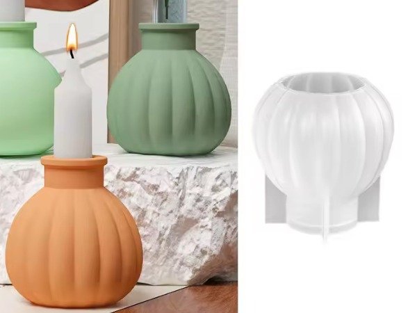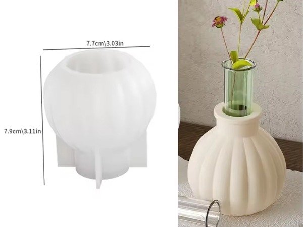 Molde de silicona flexible para crear un florero/esfera con cuerpo acanalado y cuello corto. Ideal para jesmonita, cemento, resina epoxi o yeso, logrando piezas prolijas y modernas.