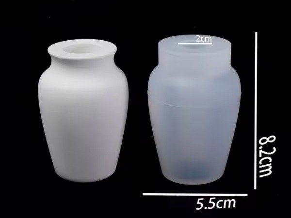 Molde de silicona flexible para crear un florero/jarroncito de líneas clásicas con cuello abierto. Ideal para jesmonita, cemento, resina epoxi o yeso, logrando piezas prolijas, pesadas y con look elegante.