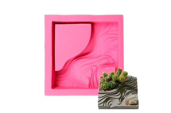 🪴 Este molde es perfecto para crear macetas decorativas con un diseño inspirado en jardines zen. Su forma combina curvas suaves y niveles ondulados que simulan el relieve de una montaña, ideal para cactus, suculentas o pequeñas plantas ornamentales.