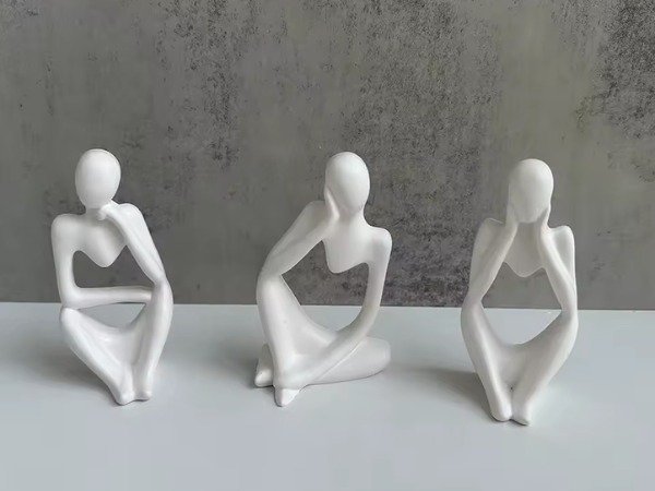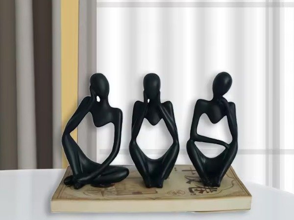 Diseño: 3 poses distintas de figura abstracta (estilo escultórico). Acabado liso, cantos definidos y base estable.