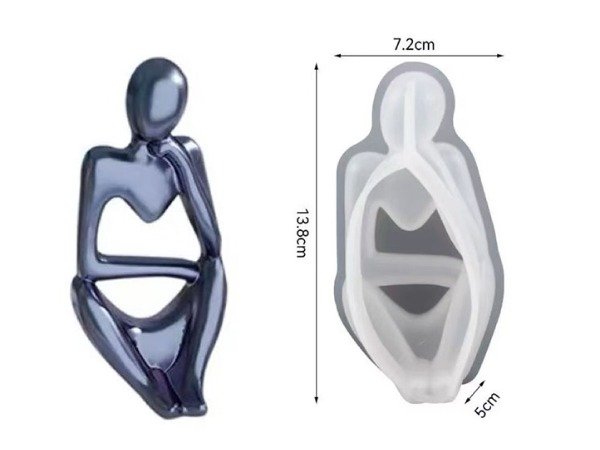 Molde(s) de silicona flexible para crear esculturas minimalistas tipo “pensadora”, con líneas orgánicas y cavidades internas que realzan el juego de luces y sombras. Ideales para cemento, resina epoxi, jesmonita o yeso, logrando piezas prolijas, modernas y listas para ambientar estantes, mesas y rincones deco.