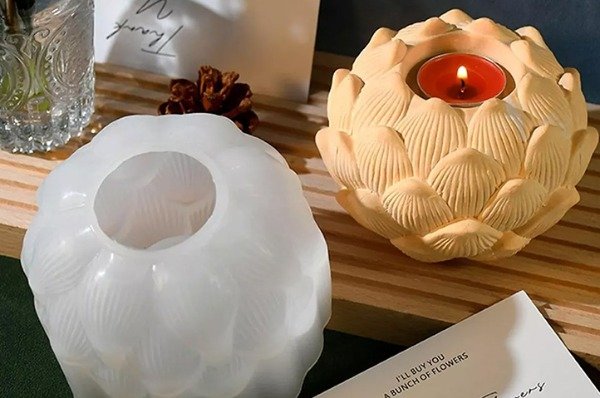 🕯️ Molde de Silicona “Porta Vela Flor de Loto Grande”