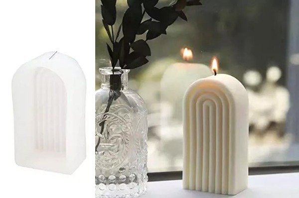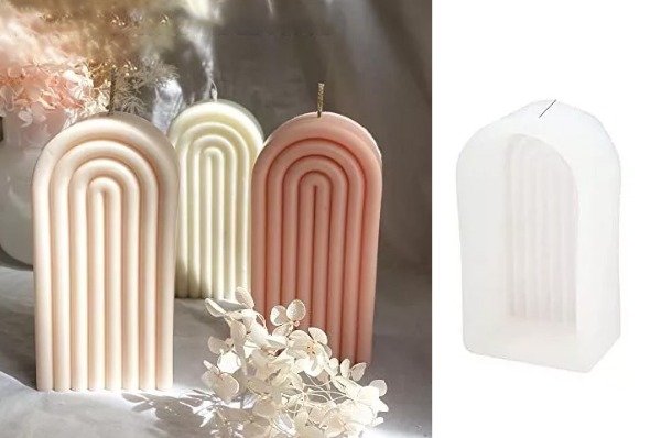 Molde de silicona flexible para crear una vela decorativa con silueta de arco iris en relieve (estilo arco/templo). Ideal para cera (soja, parafina o blends) y también compatible con resina epoxi, jesmonita o y es o para piezas deco sin mecha. Lográ terminaciones prolijas y líneas nítidas.