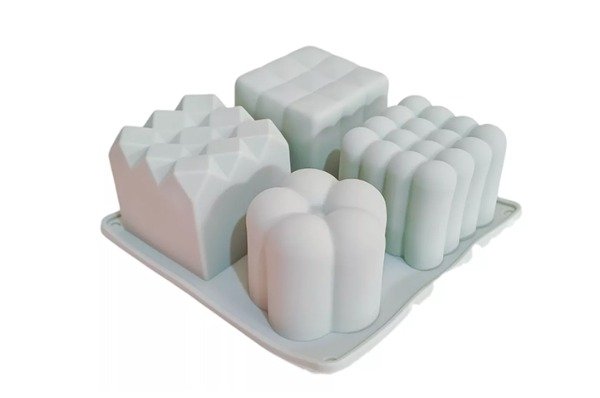 Molde de silicona flexible con 4 cavidades para crear cubos decorativos de diferentes texturas: bubble/esferas, flor/ trébol suave, geométrico facetado y cuadrícula soft. Ideal para cera de vela (soja, parafina, blends) y también para resina epoxi, jesmonita o yeso, logrando piezas prolijas y bien definidas.