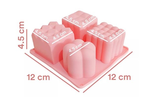 Incluye: 1 molde de silicona con 4 cavidades (4 diseños distintos).