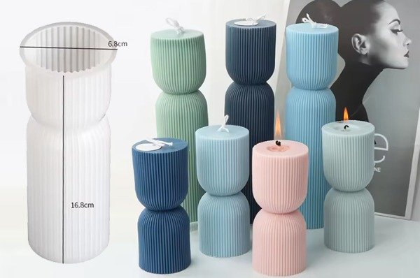Molde cilíndrico alto con estriado fino en toda la superficie para hacer velas con un look moderno y elegante. Su formato estilizado luce perfecto en centros de mesa, sets decorativos y combos con velas bajas del mismo estilo.
